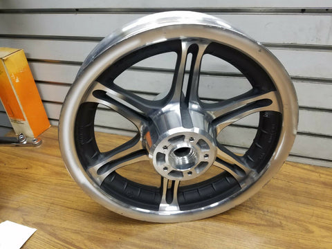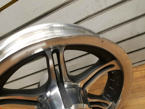 Black Slotted Mag Wheel Harley Touring Ultra Classic Road King. Front 3.00x16 OEM. Factory Harley wheel optional accessory.... Someone beat up edges with tire iron.. maybe sand down edges & polish out,