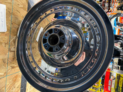 Chrome Solid Disc Mag Wheel Harley FAtboy Softail Sportster dyna 3x16 FLSTF OEM   wheel is a front  can tap the holes out to next size & run on a rear   few smalls in chrome    overall pretty nice wheel. for 1984-1999 timken style bearings 3/4" axle