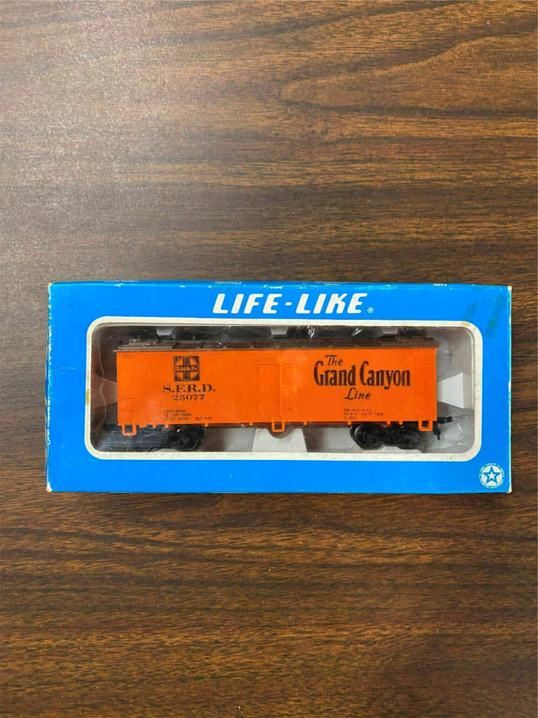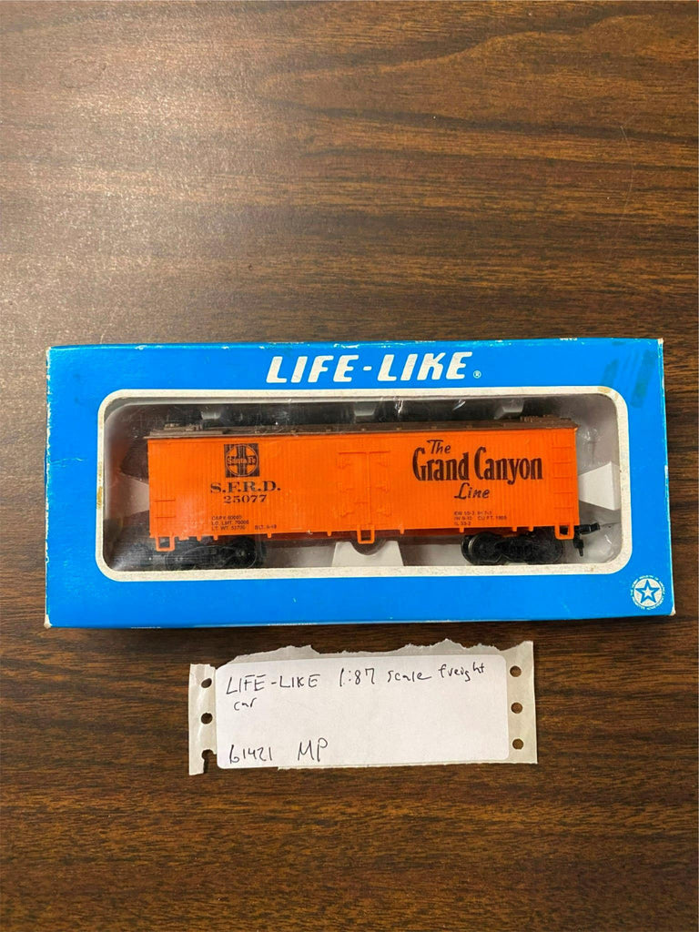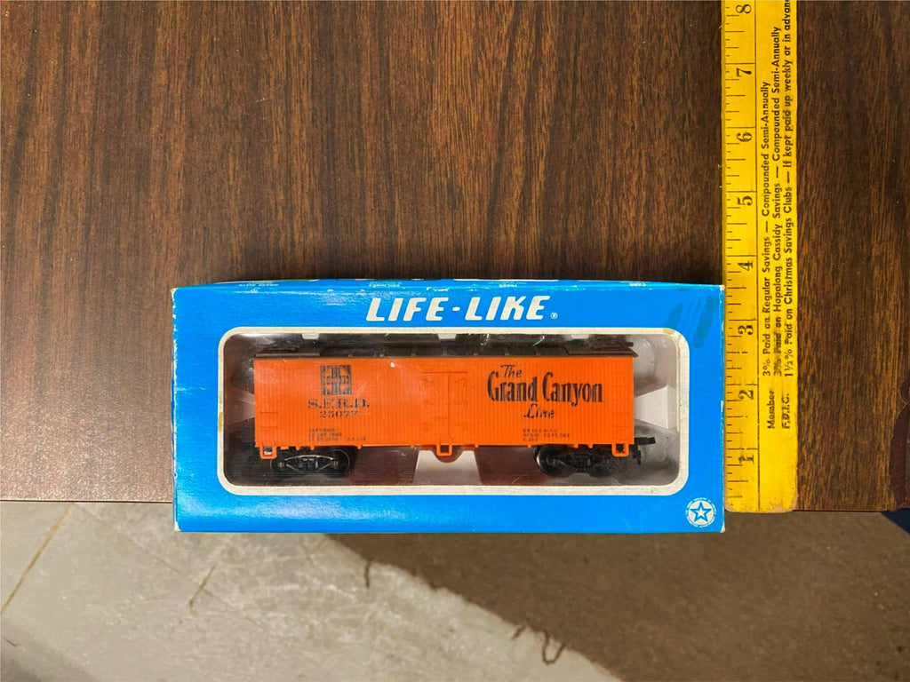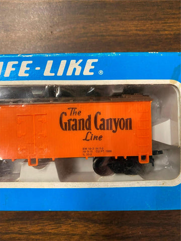 Vintage LIFE-LIKE 1:87 scale model freight car. The Grand Canyon line freight car is included. Very cool and unique. Made in Hong Kong for LIFE-LIKE PRODUCTS, INC. Something you DO NOT see everyday!! Comes with the original box. Is a wonderful item to add to your railroad HO scale collection!!!