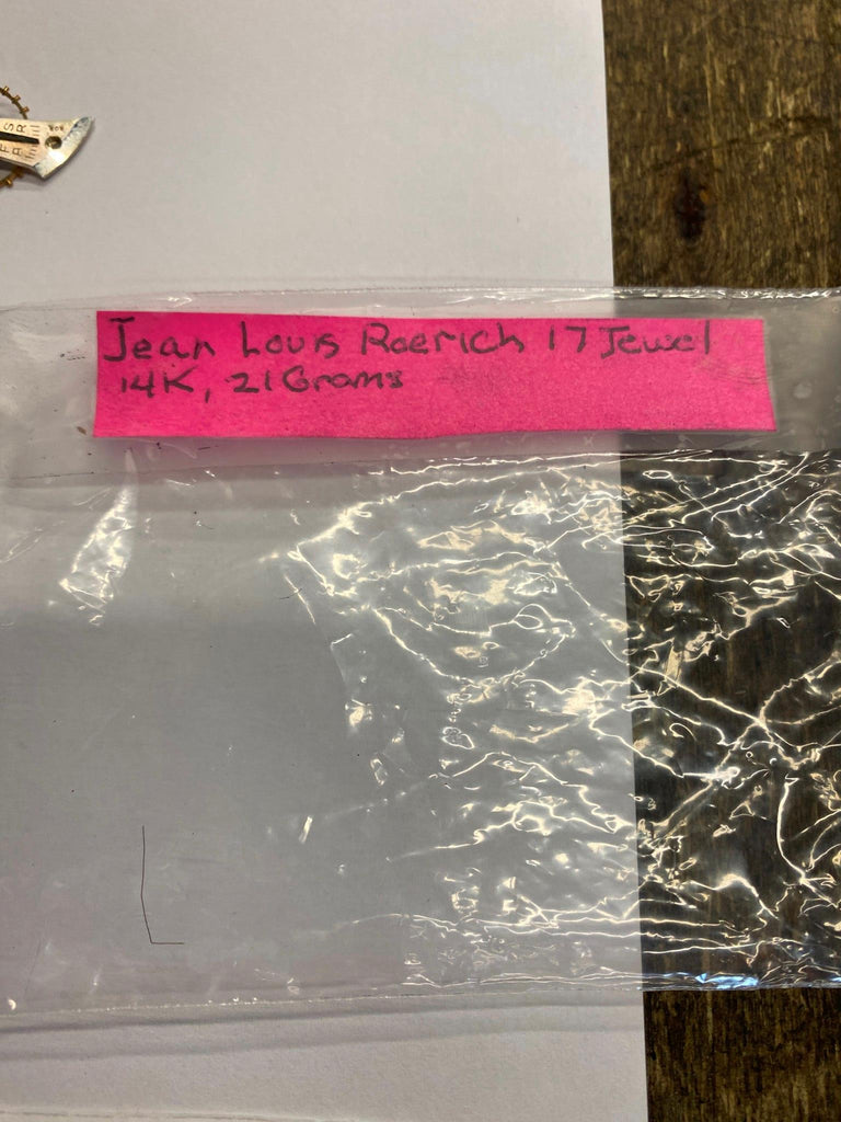 14K Gold jean louis roehrich pocket watch Vtg 17 jewel 21 grams Antique Dissasembled... guy working for me told me he could fix it, worked for a minute then quit, he took it all apart then couldnt put it back together , was missing crystal,  while apart he said he tested the gold, he said the crown & chain holder seem to be gold also (tried them with a magnet) tested both   said the gold parts weighed 21 grams thats with the crown & holder....not certain about those,  he told me he could scrap it for about 900.00   I cant imagine doing that, think it needs put back together, was my great uncles, he loved this watch, got it from retirement from post office for many years.   dont know all the details but thats what my aunt told me.....