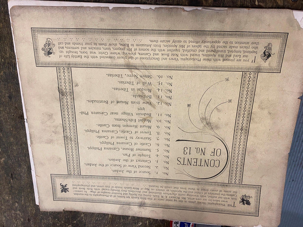 Although Bain clearly staged The Tomb of Lazarus, Lee emphasized the spontaneity of the pictures to guarantee their authenticity. He also stressed the strenuousness of the journey, especially for Bain’s delicate cargo of glass plates.[45] Lee told readers, “The most of our baggage was so fragile that every mile of the fifteen thousand in our contemplated journey was attended with peril…. These boxes [of photographic plates] had been carried from place to place by railway cars, by express wagons, by carriages, by steamboats, by row-boats, by porters.”[46] Bain’s decision to reproduce rather than retouch the break line running down the center of The Tomb of Lazarus, likely from a cracked glass negative, attests to this arduous firsthand experience. Photographs of the Holy Land were rarely ever touched up or even tinted. This hands-off approach preserved the avowed status of Holy Land photography as pure documentary and thus bestowed an aura of truth to the Bible.
