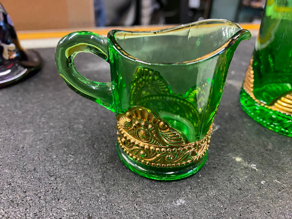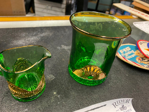 1909 Ohio States Fair Souvenir Glasses . Emerald with Gold Trim . Collectible Antique Green glass...  great little items for the collector!! Beautiful pieces!!