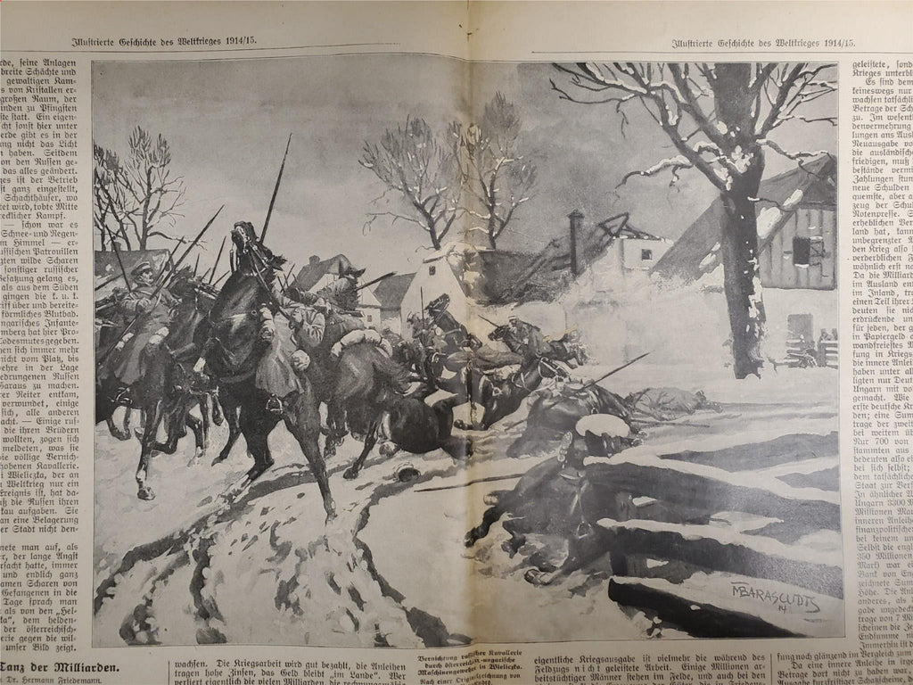 1914-15 WW1 Artwork by Max Barascudts From Illustrated Story German Publication. Taken from the 1914 Illustrated Story of World War 1 German Magazine/Newspaper Publication.