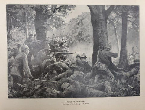 Taken from Illustrated Story of World War 1914/1915 German Publication Showing a battle by artist A. Roloff.