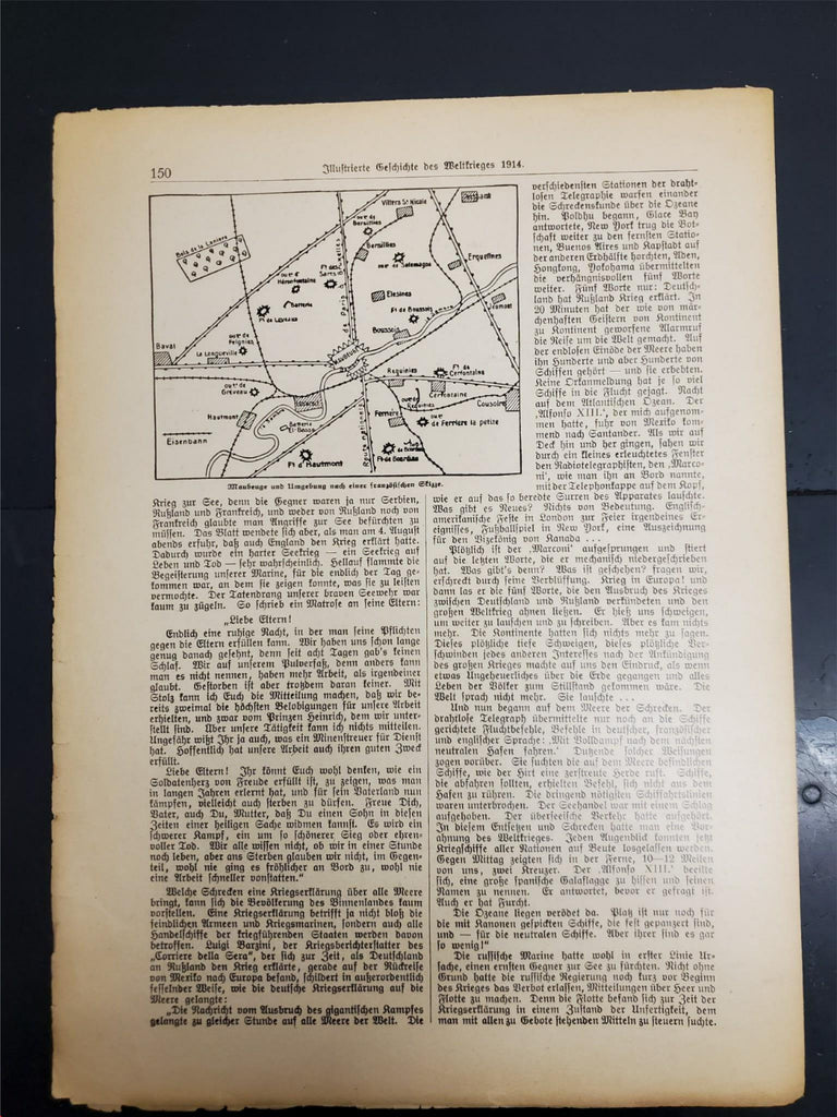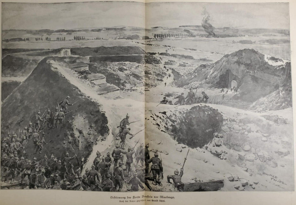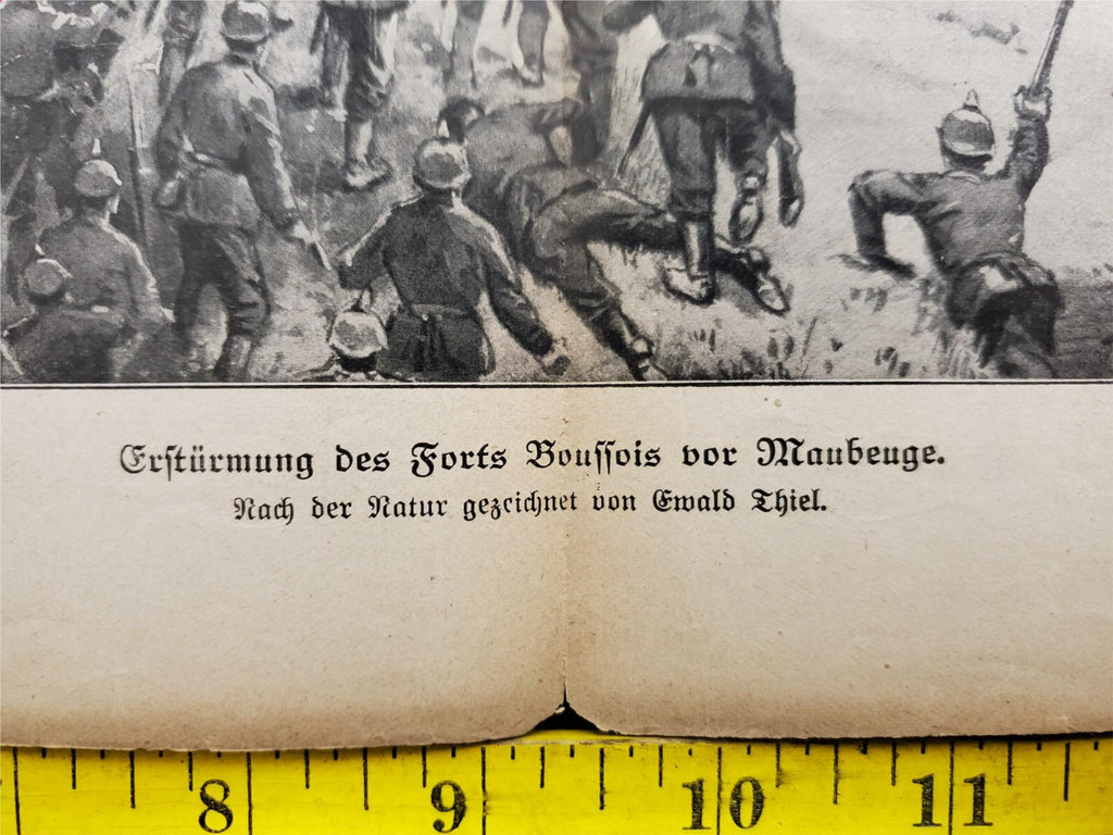 1914 WW1 Battle Art by Ewald Thiel From Illustrated Story German Publication Taken from the 1914 Illustrated Story of World War 1 German Magazine/Newspaper Publication.