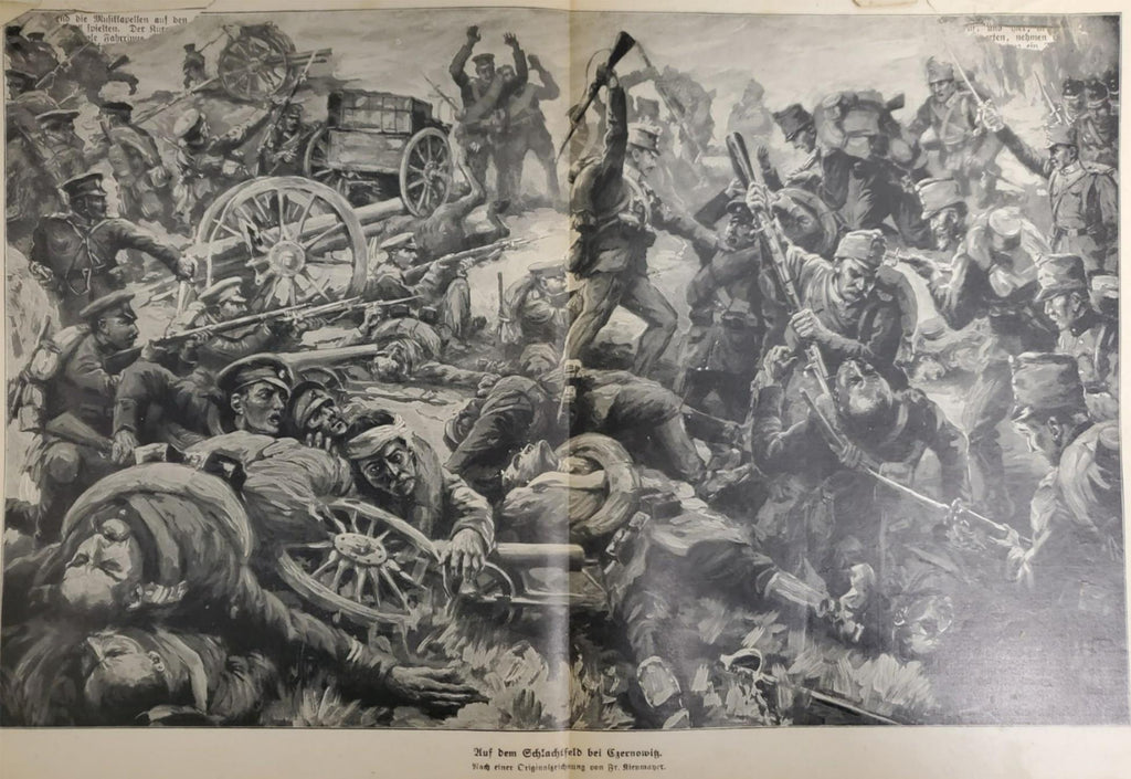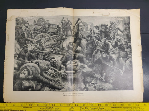 1914 WW1 Battle Art by Franz Kienmayer From Illustrated Story German Publication. Taken from the 1914 Illustrated Story of World War 1 German Magazine/Newspaper Publication.