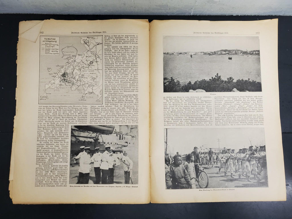 Good condition. Fragile. Keep in mind it is over 100 years old. Some blemishes on the artwork battle scene.