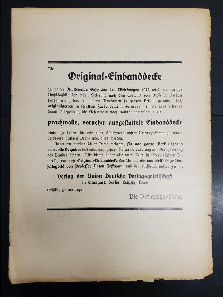1914 WW1 Cover Pg Art Anton Hoffman From Illustrated Story German Publication. Taken from the 1914 Illustrated Story of World War 1 German Magazine/Newspaper Publication.
