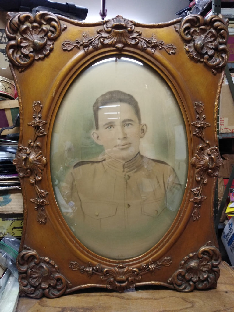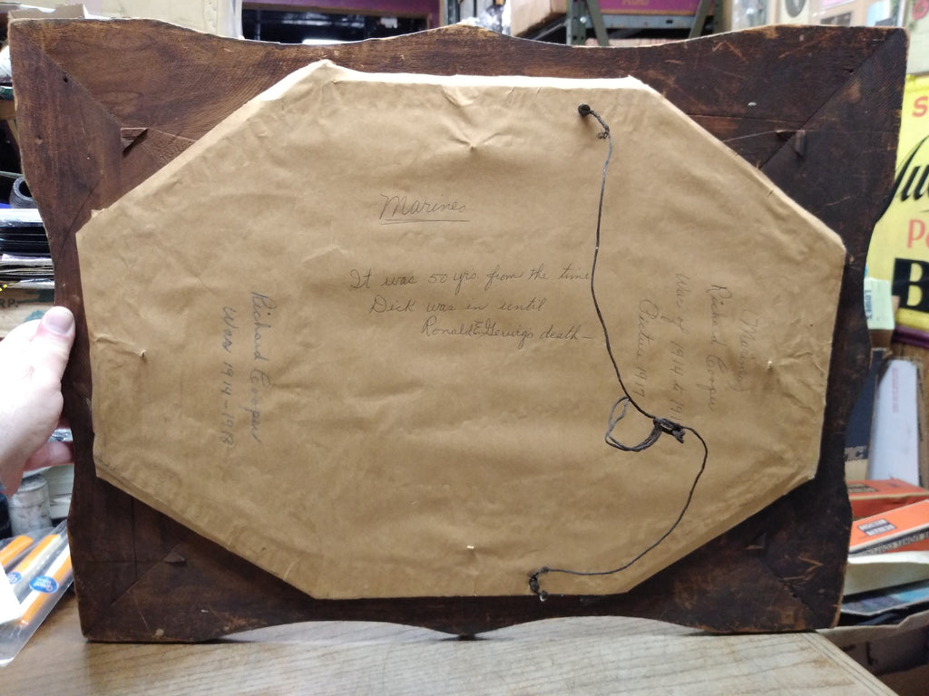 ***PLEASE LOOK AT ALL THE PICTURES AND ASK QUESTIONS BEFORE BIDDING*** This is a Vintage 1917 Antique Curved Convex Glass Fancy Picture Frame Marine 25"x19" w/Provenance in Very Good Condition! *** The pictures are a substantial part of the description so please examine all the photos and contact me if you have any questions. We will be happy to save you shipping costs by picking this up at our shop. Thank You  041525- RK-03