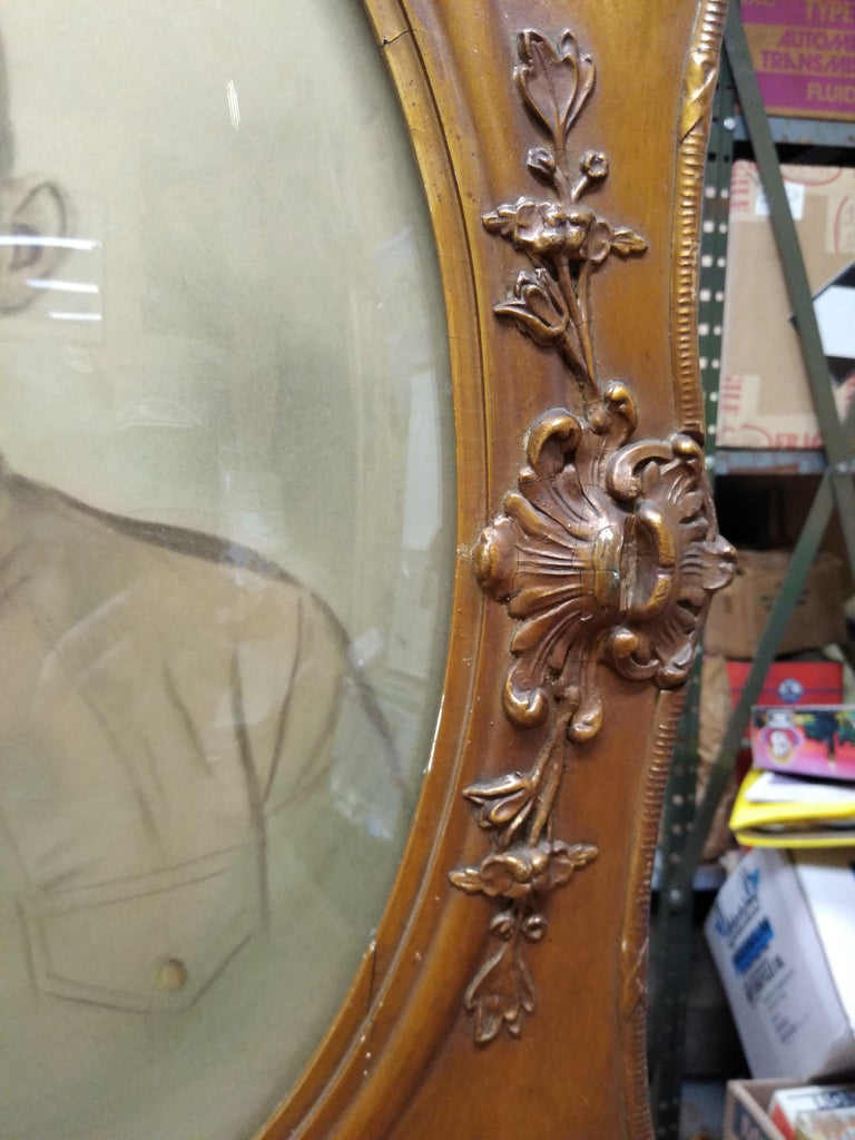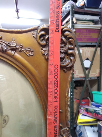 1917 Antique Curved Convex Glass Fancy Picture Frame Marine 25"x19" w/Provenance