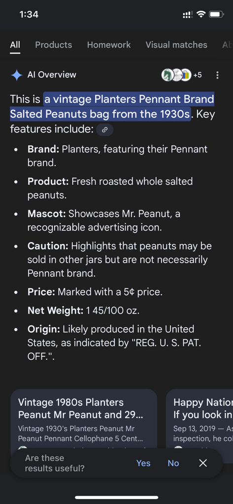 1930's Vtg Planters Pennant Peanuts Advertising Bag Sign Memorabilia Baseball Antique! in nice shape, would be real nice framed!!!