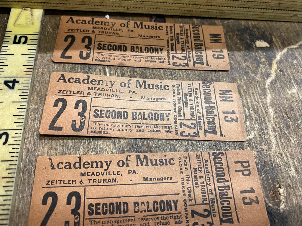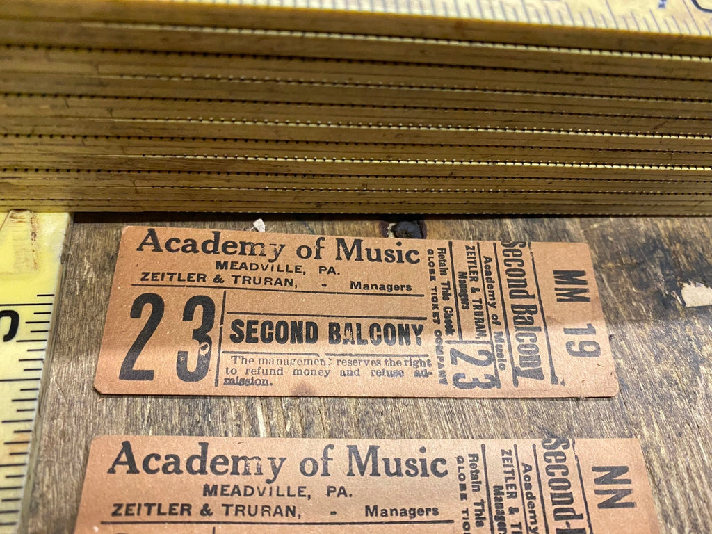 1938 Tickets Academy of music Meadville pa Zeitler Vaudvill Show Theatre concert... would look nice framed!! Been to Meadville many a time, but never saw the theatre.... Pretty cool piece of history!