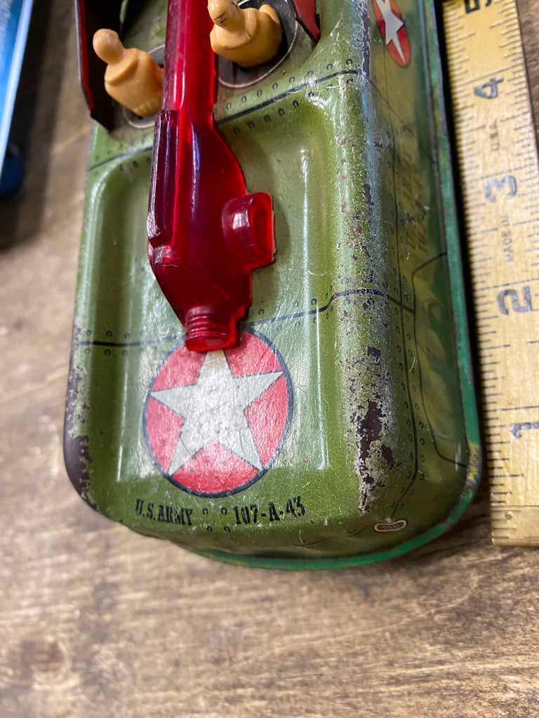 1940's Courtland Tin Litho US ARMY 107-A-43 Friction Toy Truck Military Vtg WW2 Pretty cool piece!