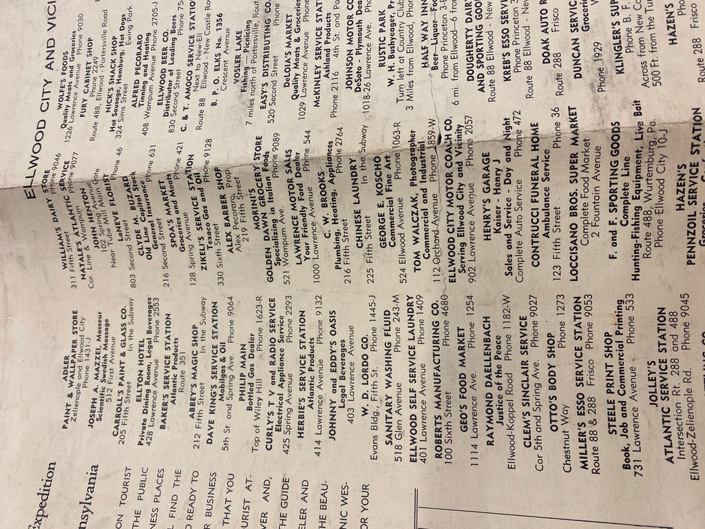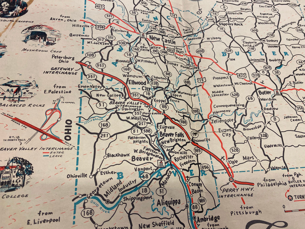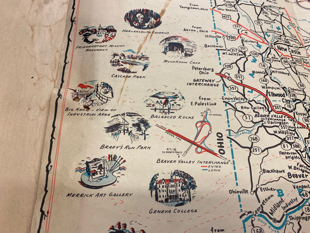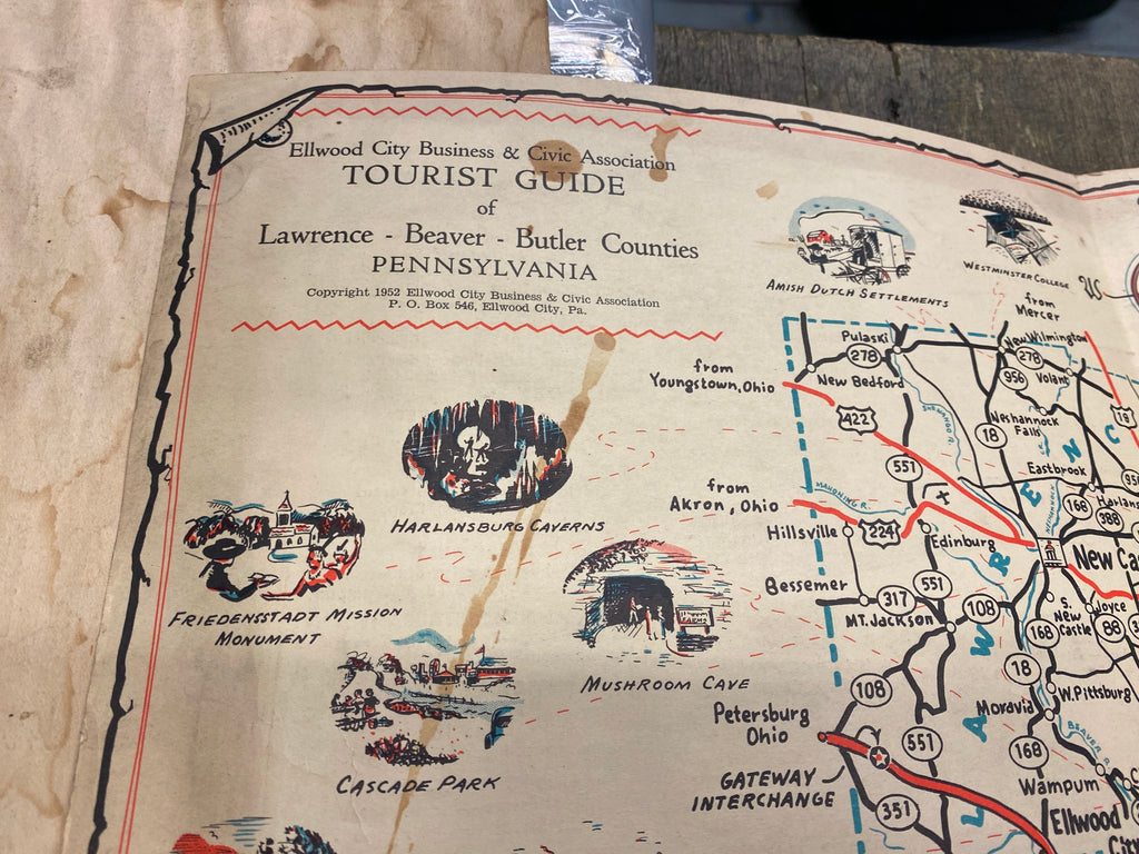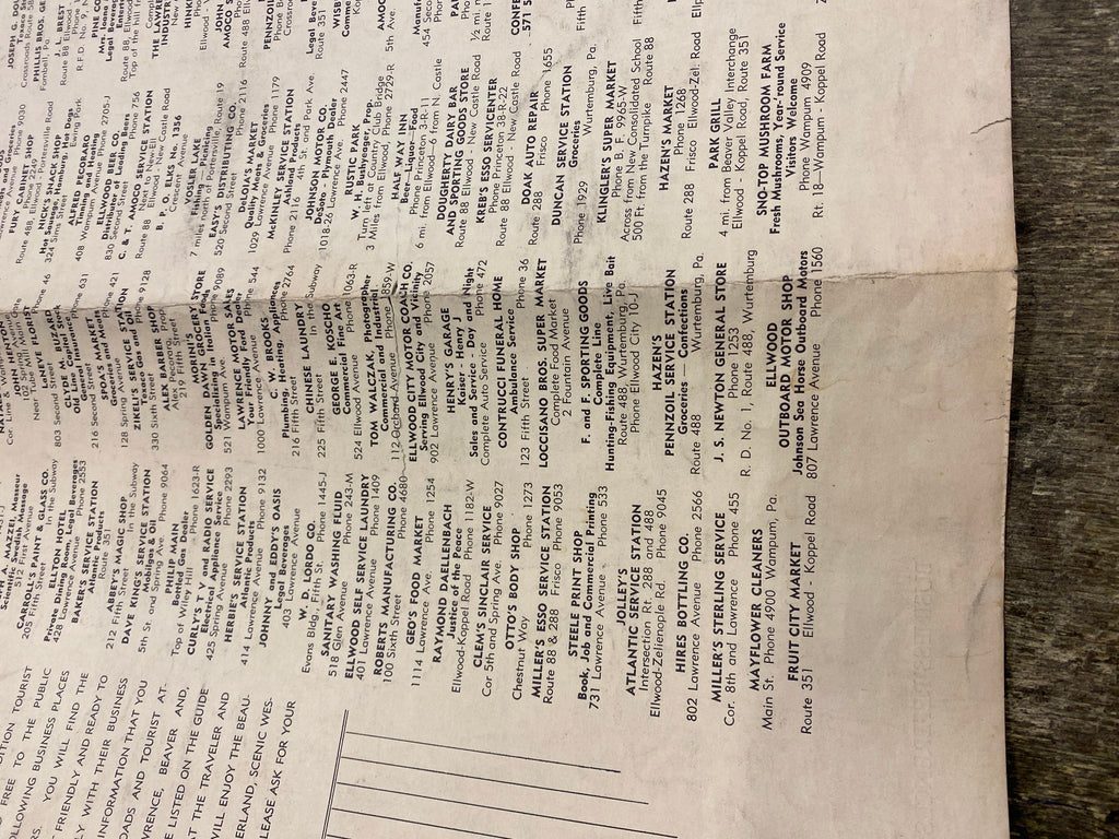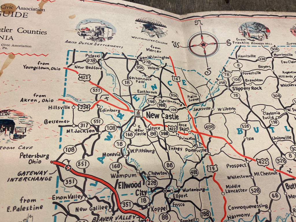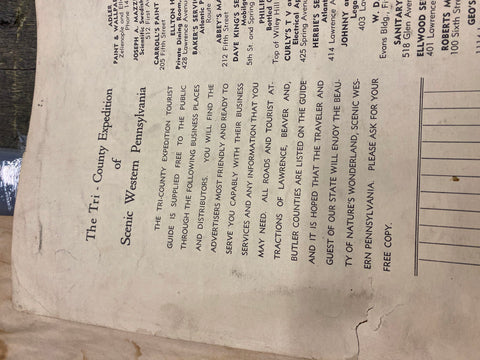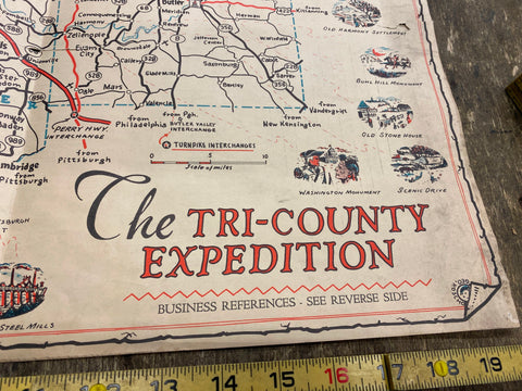 1952 Tri County Expedition Map Lawrence country butler Beaver Pa Advertising! Has stores & sponsors on back! maybe you recognize some of them? Would be Great Framed!!