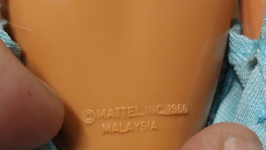1960s Mattel Dance Party Barbie Blue Dress Pink Halter Hair Accessory Blonde