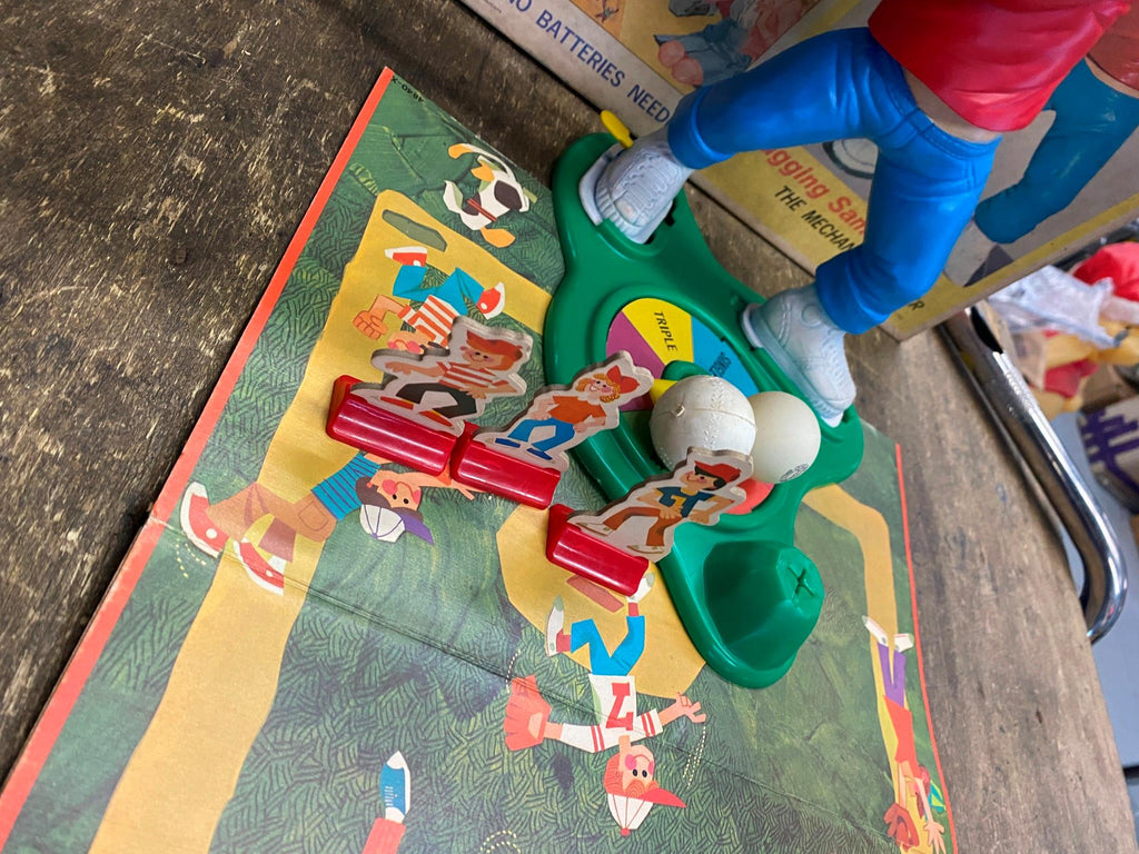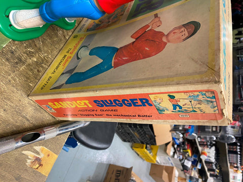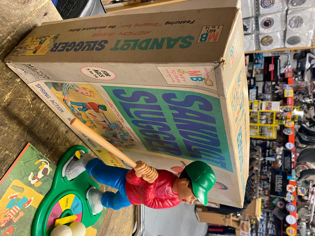 1968 Milton Bradley Sandlot Slugger Baseball Game Box Slugging Sam 12" Swings! hit lever on his foot & he swings.... pretty cool game,