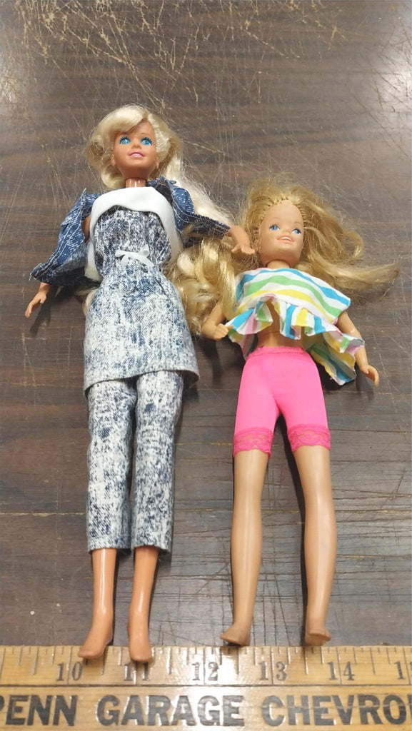 1970s Mattel Barbie Little Sister Denim Outfit Pink Short Blonde Hair Blue Eyes