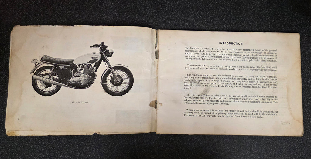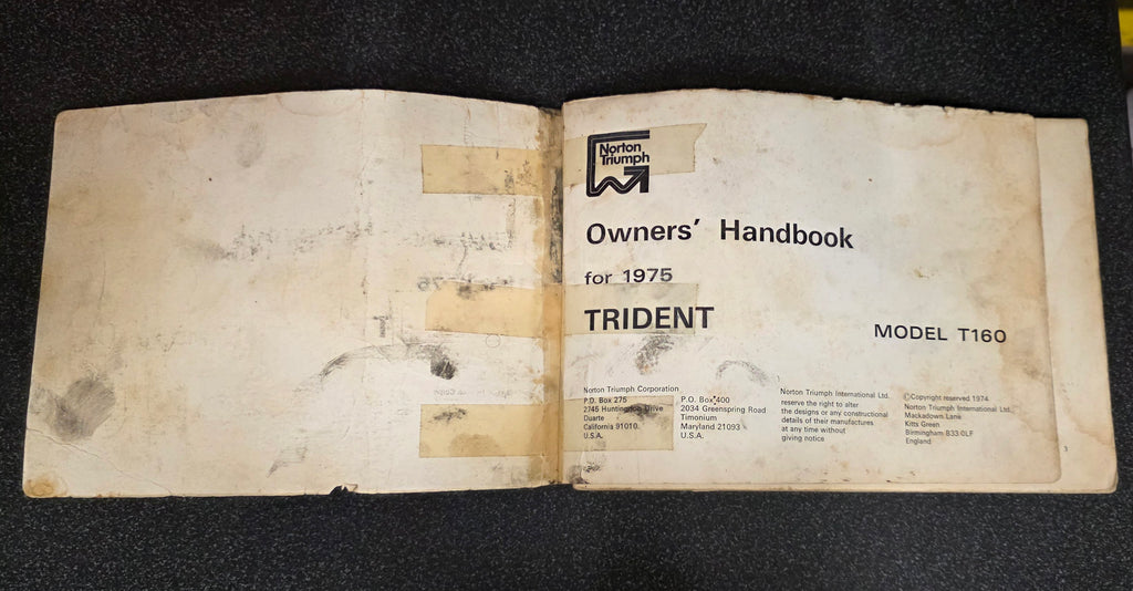 1975 Norton Triumph Trident T160 Maintenance Owners Handbook Manual 00-4222