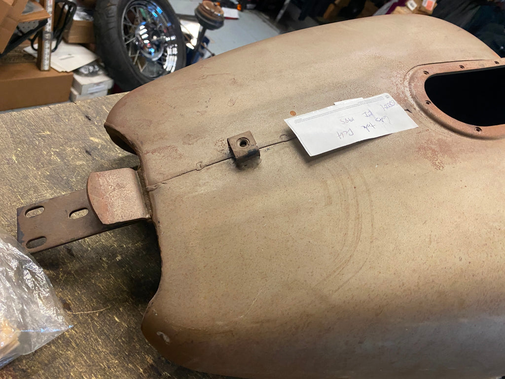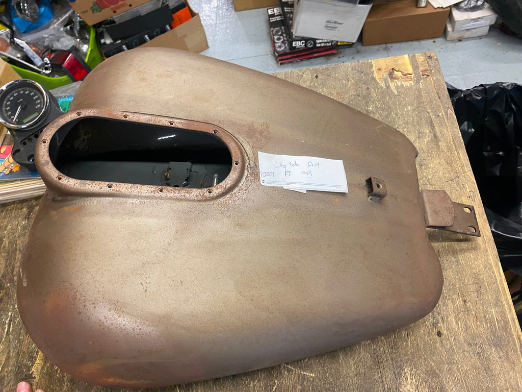 1989-1995 Harley FLH GAs tank FI 30th ann Touring Glide Bagger   set up for fuel injection but can put a conversion kit on to run petcock    think this is 1995 30th ann tank, (first fuel injected)  still has square tab on back of tank. should have been rounded in 1996