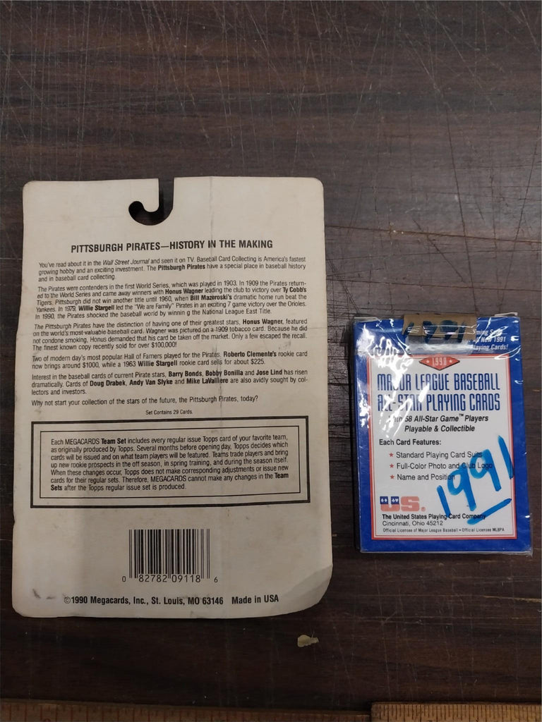 Selling in picture, that pack of Pirates Trading Cards also the pack of Baseball All Star Playing Cards