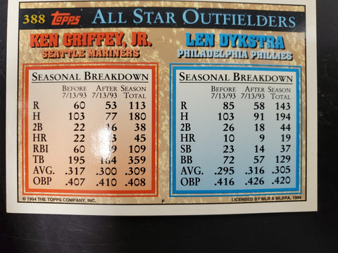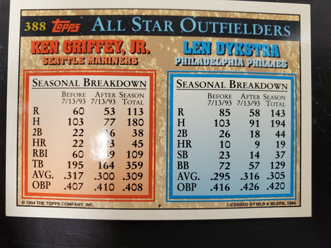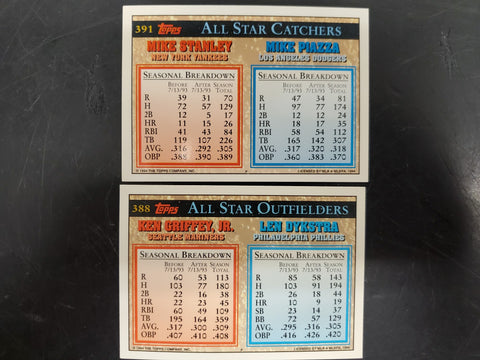 1993 Topps All Stars Baseball Cards Ft. Piazza Stanley Dykstra & Ken Griffey Jr.