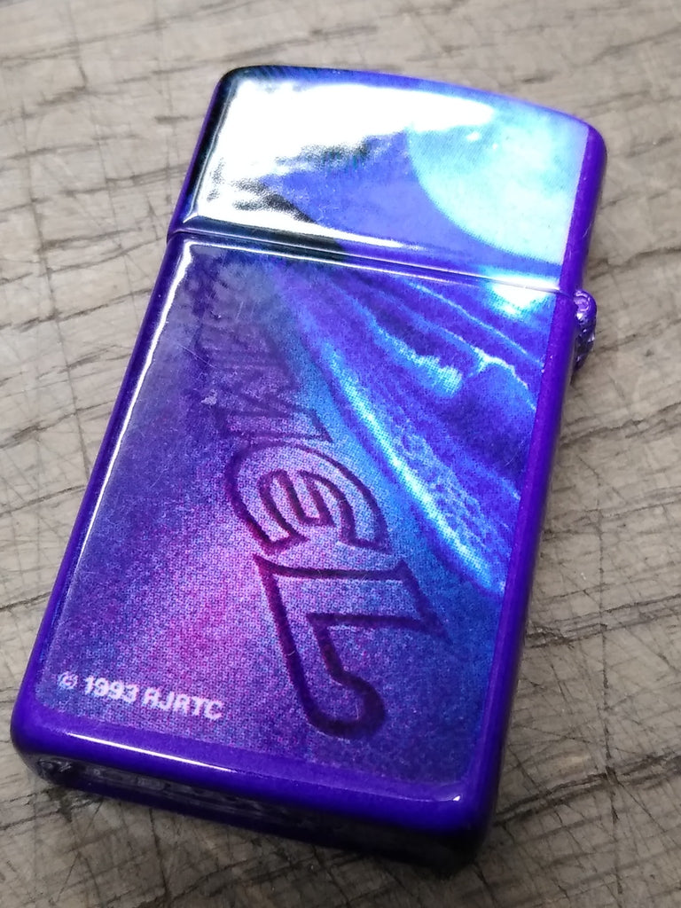 ***PLEASE LOOK AT ALL THE PICTURES AND ASK QUESTIONS BEFORE BIDDING*** This is a Vintage 1993 Unfired ZIPPO Camel Slim Cigarette Lighter Slim Cigarette Lighter Blue Purple Matte Moonlit Beach Very Nice Shape!!! *** The pictures are a substantial part of the description so please examine all the photos and contact me if you have any questions. We will be happy to save you shipping costs by picking this up at our shop. Thank You 121724- RK-17