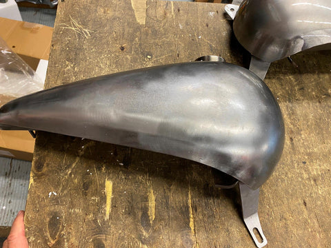 2.5 Gallon Fatbob Gas Tanks Harley Chopper Shovelhead Panhead Thin Custom Big Twins 1936-1984  direct bolt on with adapter mount... no gap in center, nice clean look, told these were designed after the old WR Racing gas tanks on the harley flatheads...... nice narrow, clean line look for your custom!!!!