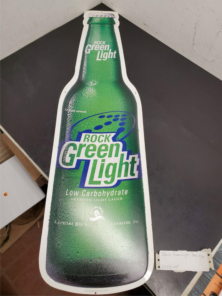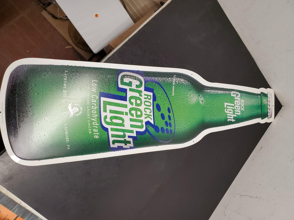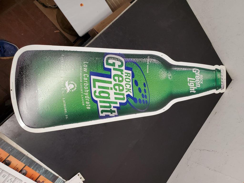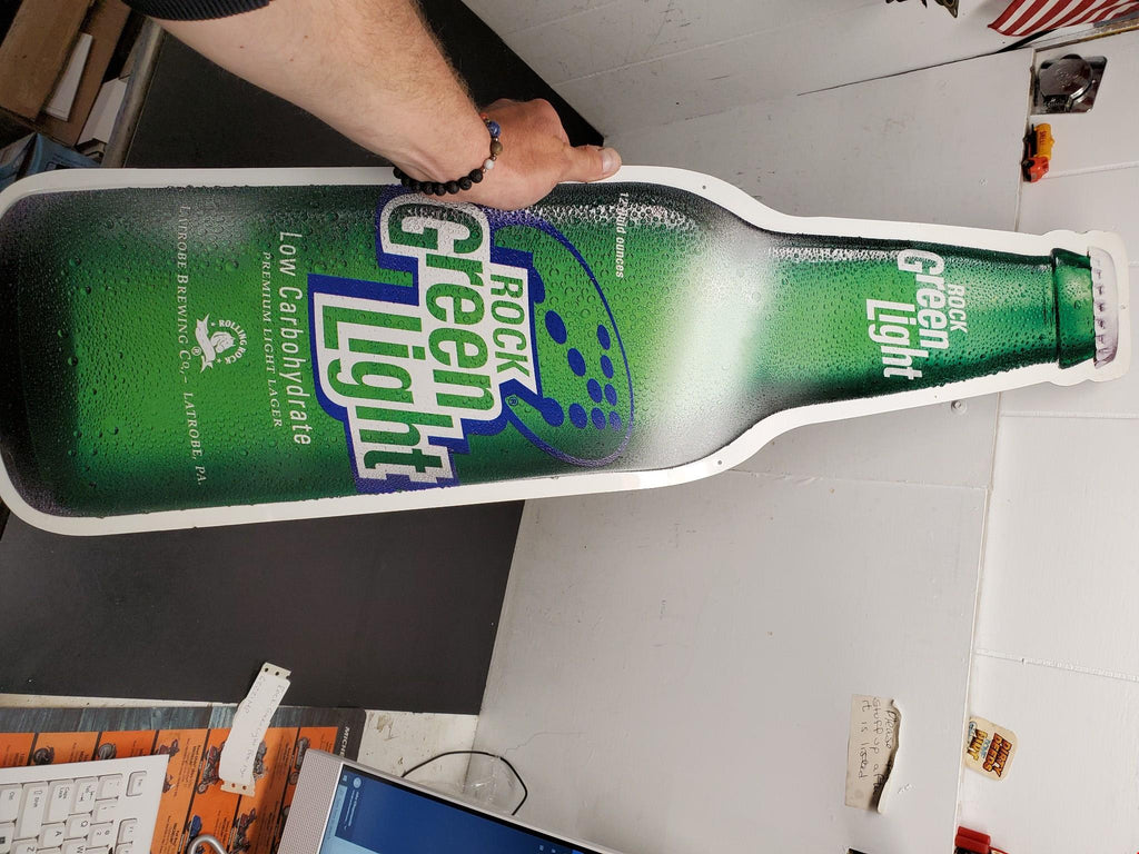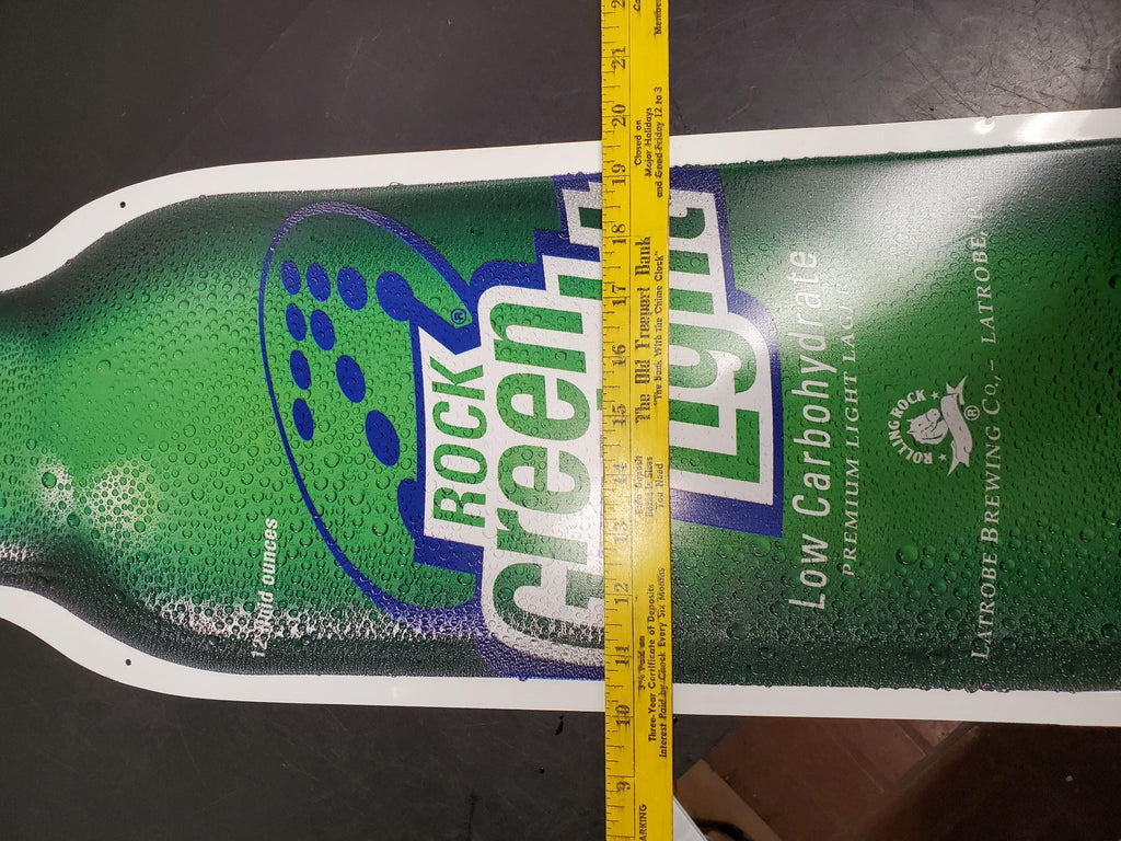 Vintage ROCK GREEN LIGHT PREMIUM LIGHT LAGER TIN BEER SIGN. Perfect collectible for the Rolling Rock enthusiast!! In Good condition.