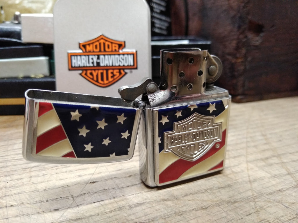 ***PLEASE LOOK AT ALL THE PICTURES AND ASK QUESTIONS BEFORE BIDDING*** This is a Vintage 2005 Zippo Lighter Harley Davidson Motorcycles Red White Blue Enamel American Flag w/Metal Box, Really Nice Shape! *** The pictures are a substantial part of the description so please examine all the photos and contact me if you have any questions. We will be happy to save you shipping costs by picking this up at our shop. Thank You 051325- RK-09