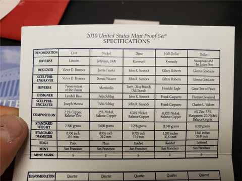 2010 United States Mint Proof Set W/Cert Auth. & Presidential $1 Coin Proof Set
