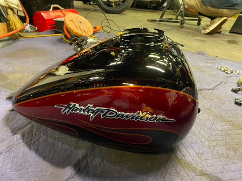 2011 Gas Tank Harley Ultra Classic Glide CVO Black Ember Rio Red Flame FLHTCUSE6 nice shape, few smalls have other body parts from this bike listed also.