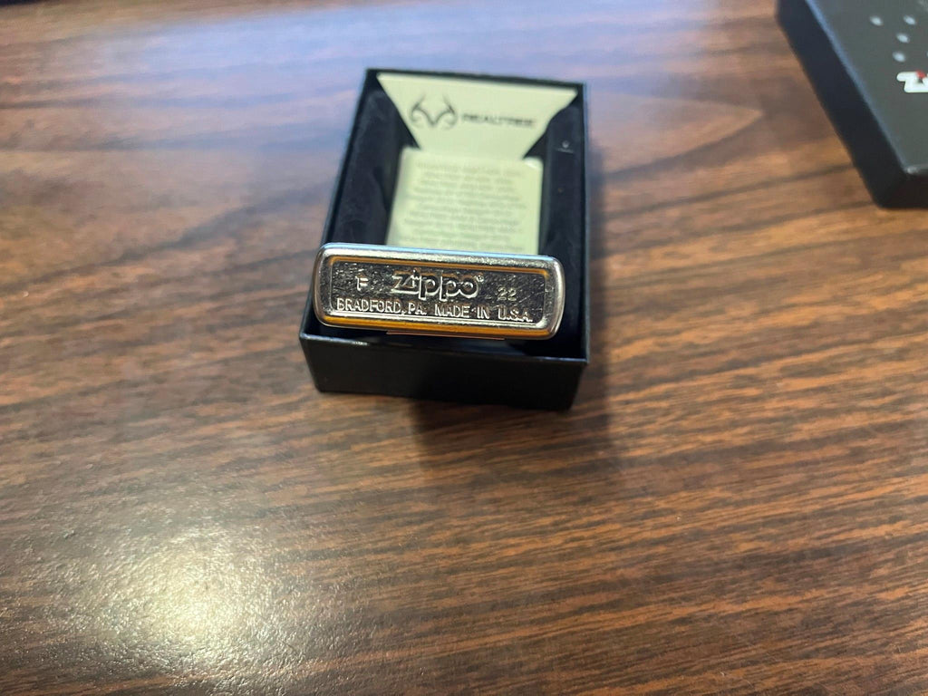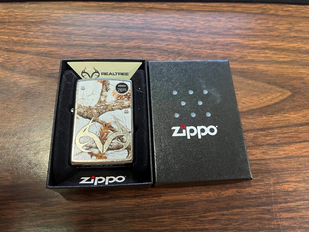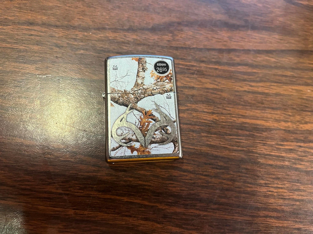 2022 Realtree Brand Zippo Lighter Unfired High Polished Chrome White Camo