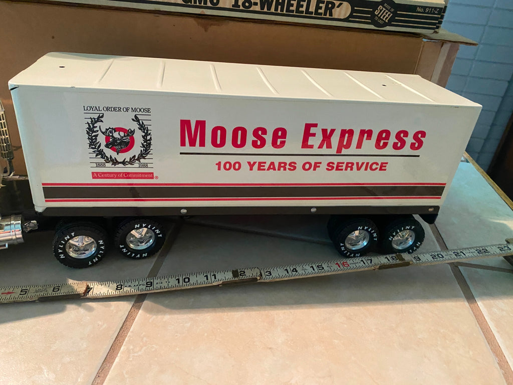 21" Nylint Loyal Order Moose Pressed Steel GMC 18-Wheeler Tin Toy truck Orig Box! still in original display & packaging box.. Great Piece for the collector! No. 911-Z