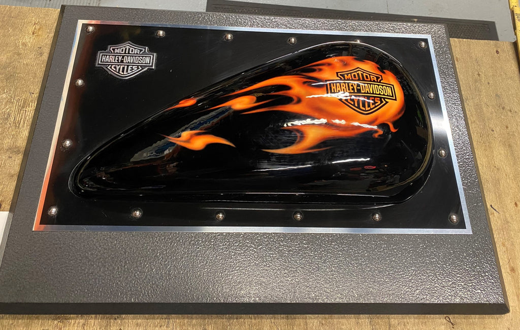 24x17 Custom Paint Gas Tank Display Harley Dealer Man Cave Flames Garage Office. Local dealer had this hanging behind his desk, think it was a promo for Harley custom paint....