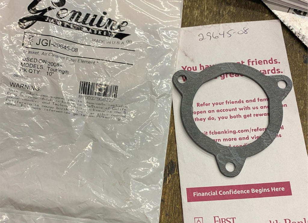 29645-08 Gasket Air Cleaner Filter Element Harley Touring FLH Road King glide 2008^ touring models james gaskets