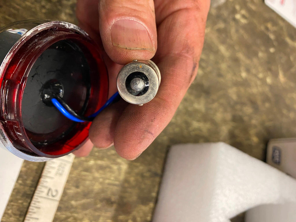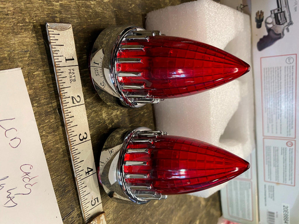 59 Chevy LED Custom Turn Signal Lens Taillight brake light  Harley Fatboy Touring Sportster Dyna Chopper  snap in stock harley bullet turn signals   Great for your street glide, custom chopper,    never seen them before   customer traded them in, new in foam.   last pic is one we snapped into a factory turn signal body.