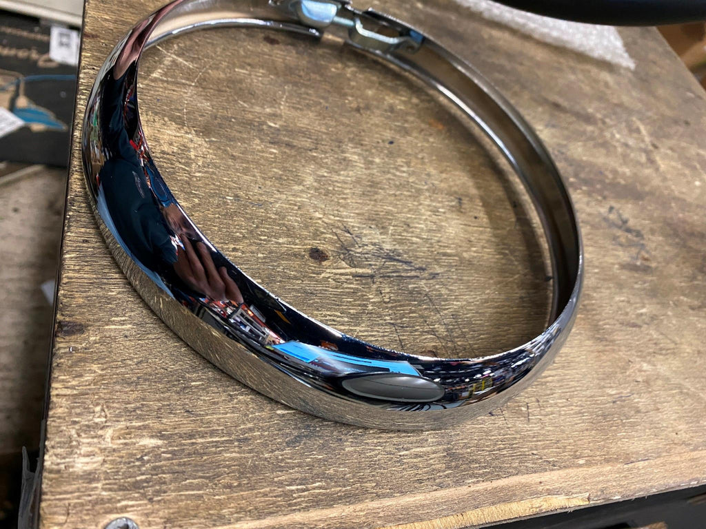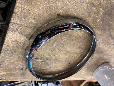 Chrome round7" Headlamp Chrome Outer Rim Harley Panhead Duo Hydra Glide 1949-1959 FL 33-0524 7" outer headlamp rim.