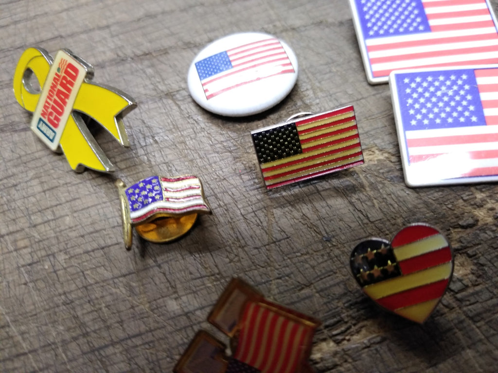 ***PLEASE LOOK AT ALL THE PICTURES AND ASK QUESTIONS BEFORE BIDDING*** This is a Vintage 8 Pc Lapel Hat Pin Lot Army National Guard Yellow Ribbon American Flag Patriotic.    *** The pictures are a substantial part of the description so please examine all the photos and contact me if you have any questions. We will be happy to save you shipping costs by picking this up at our shop. Thank You  061725- RK-05