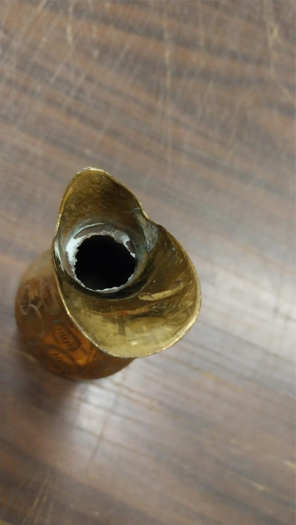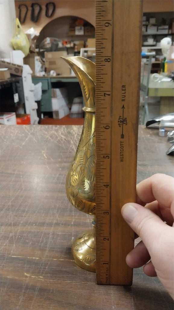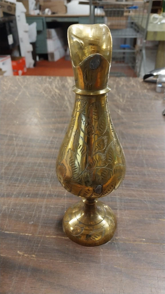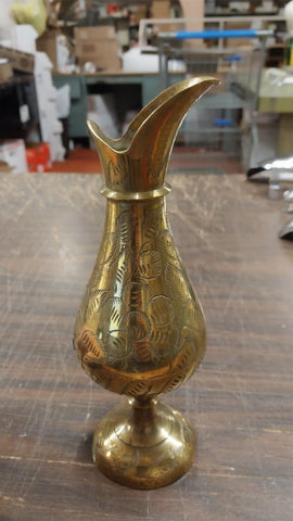 8" Vintage Brass Pitcher Vase Hand Etched Leaf Markings Sarnabra69 India 237T-8