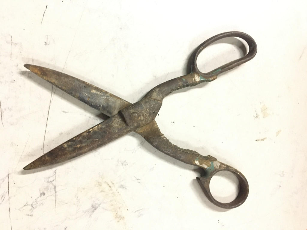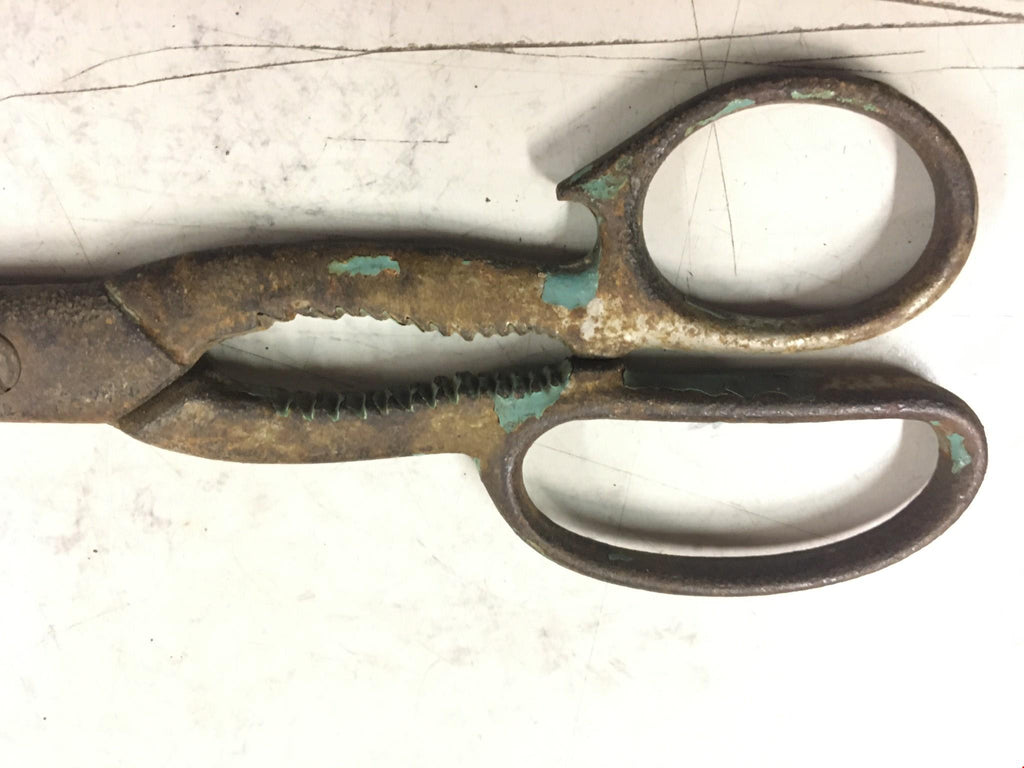 8" Vtg Wiss Rustic Kitchen Scissors w Jar Claw Bottle Opener Nut Cracker rusty. This item is in nice condition. Rusty, unable to see brand. Still cuts very nice. Moves freely without hesitation.