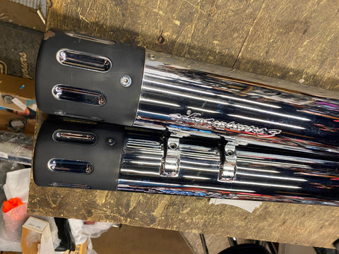 95-16 Screamin Eagle Mufflers Harley Touring FLH Street Road Glide Ultra Black Tips Really nice looking set of mufflers fit 1995-2016 models quiet type mufflers came off a cvo! #4