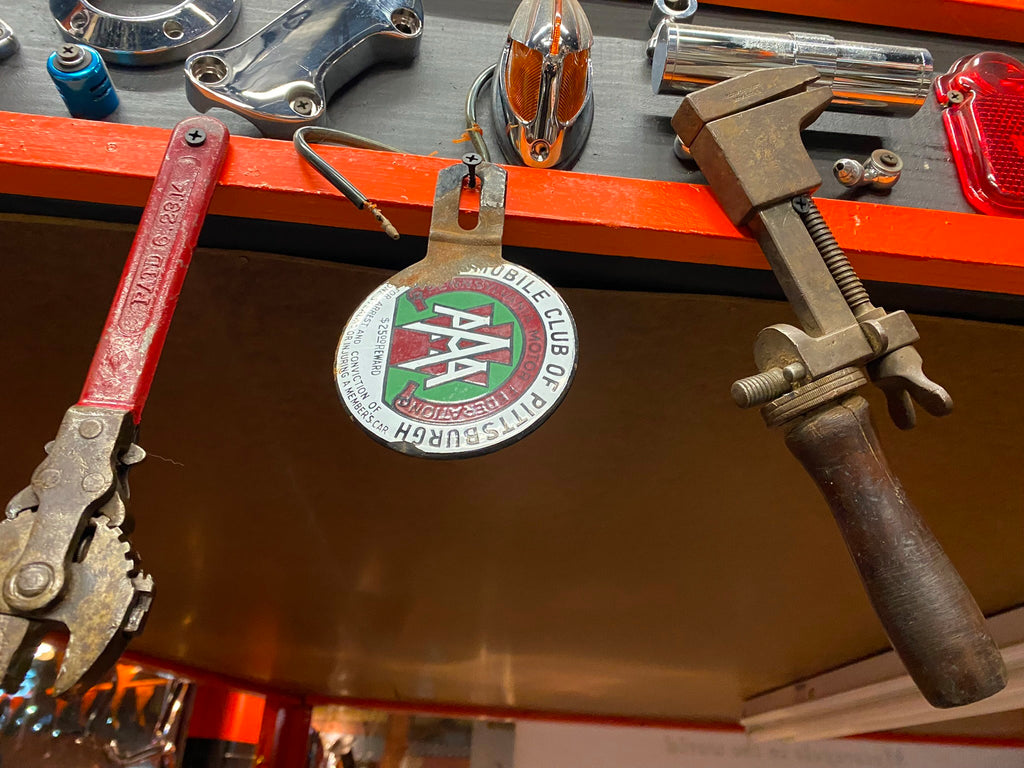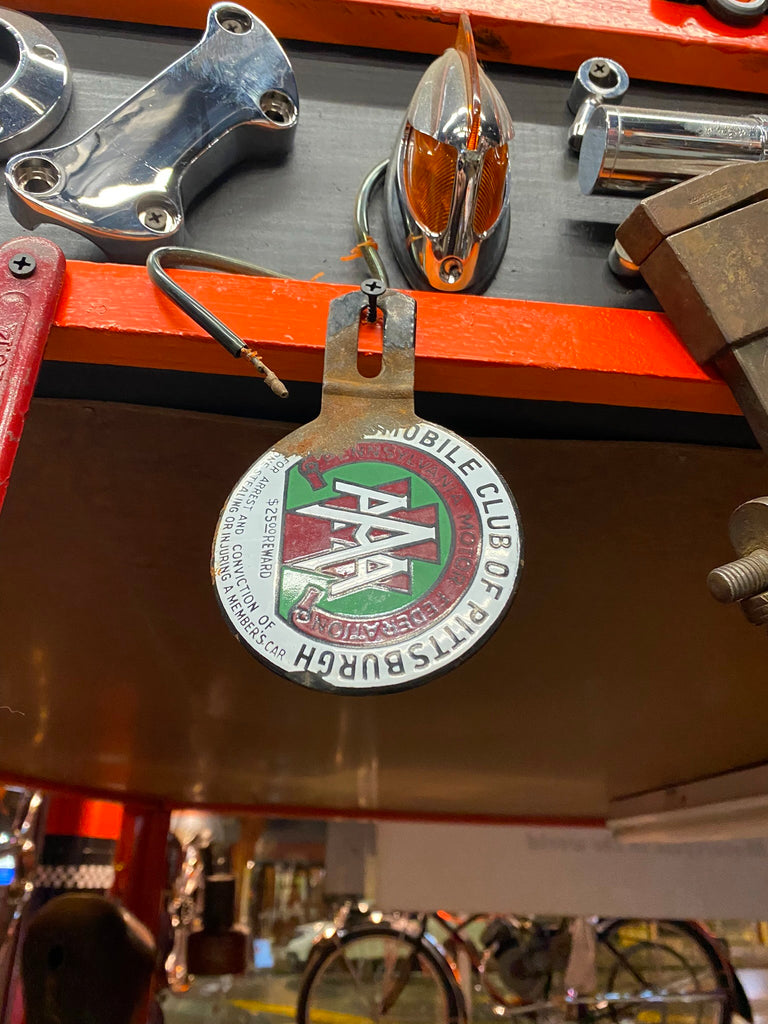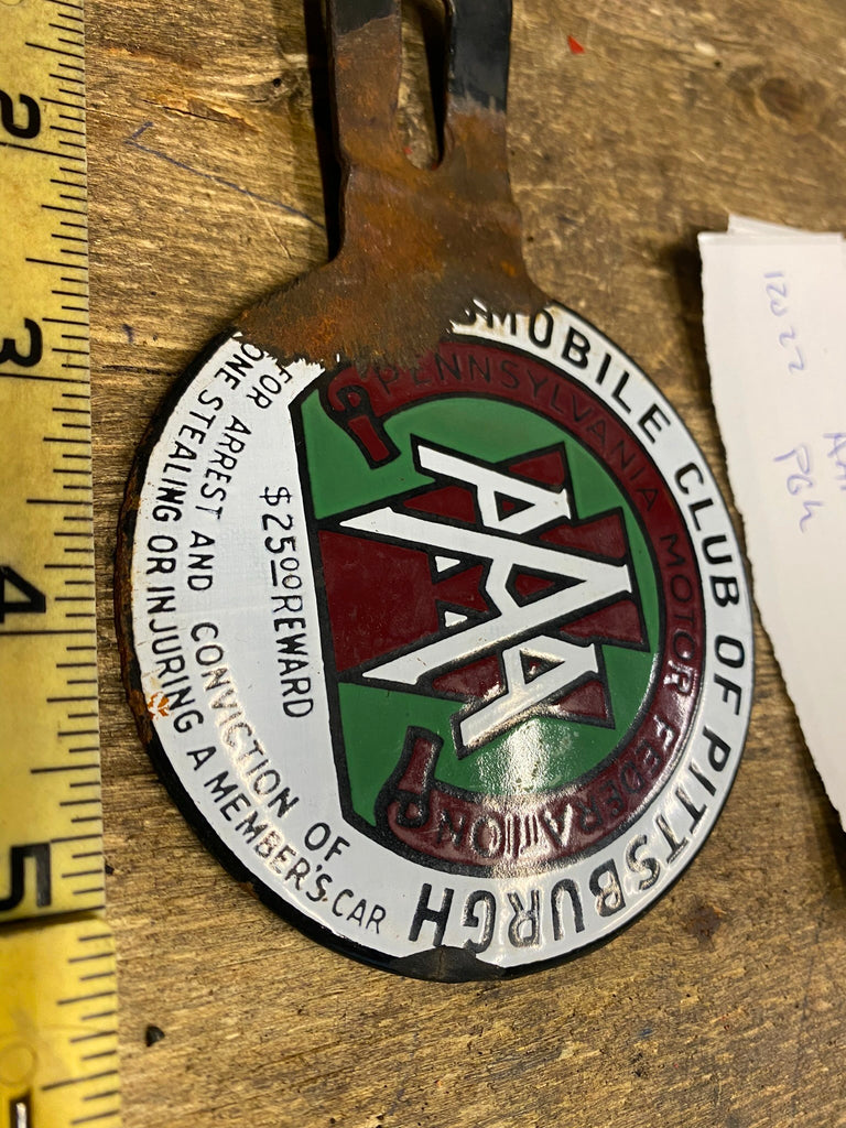 AAA License plate topper porcelain Pittsburgh Vtg Hot Rat Rod Harley 1940's Pa Great Colors!!! Nice patina! nice addition to any collection!!