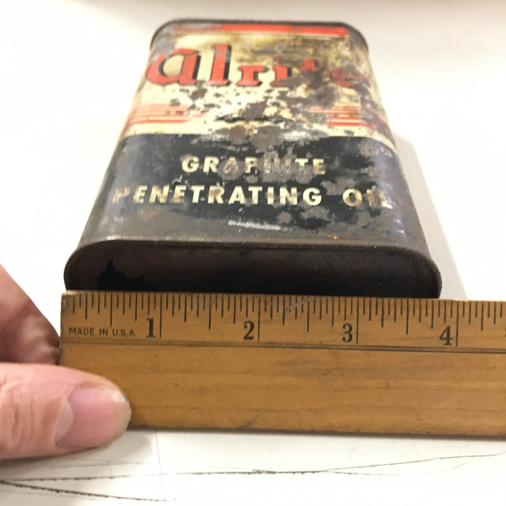 Alrite Graphite Penetrating Oil Gas tin can Vintage Truck auto 1950s Collectible.