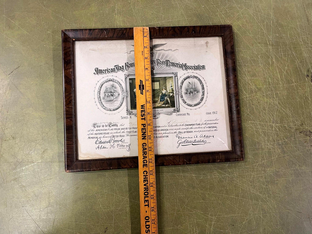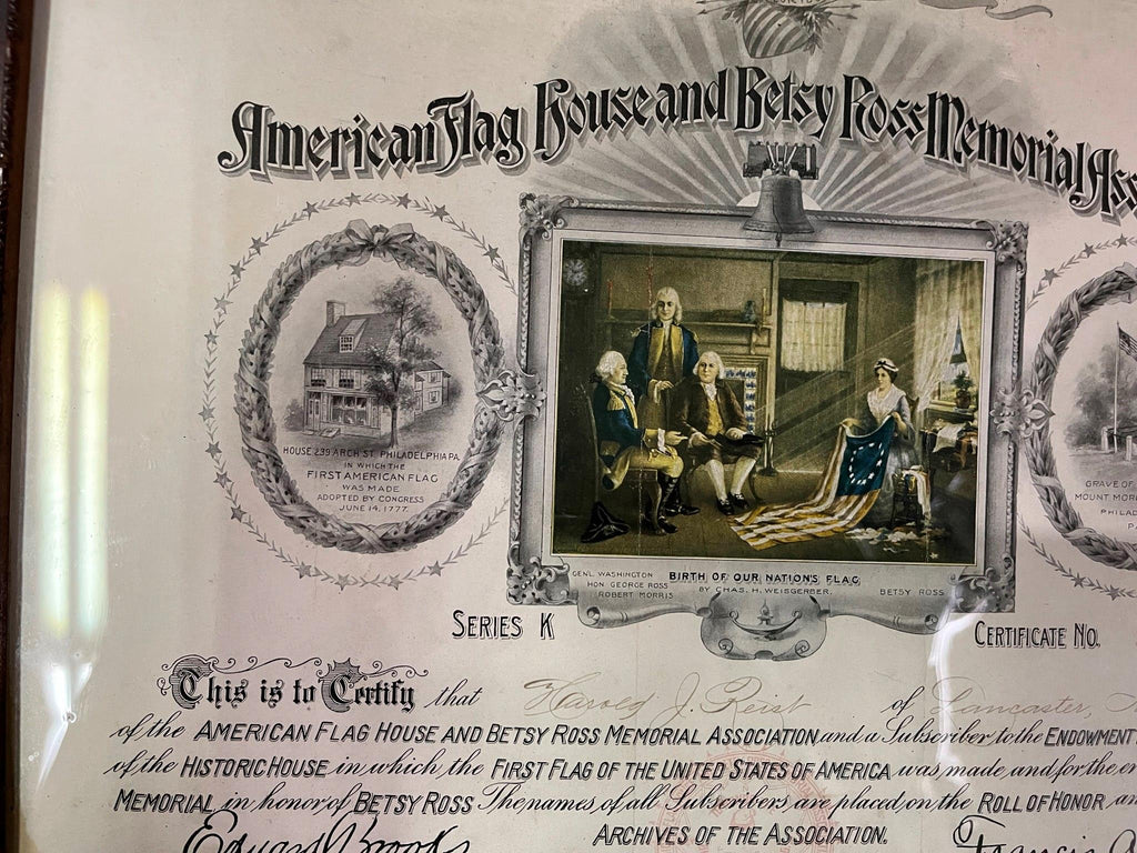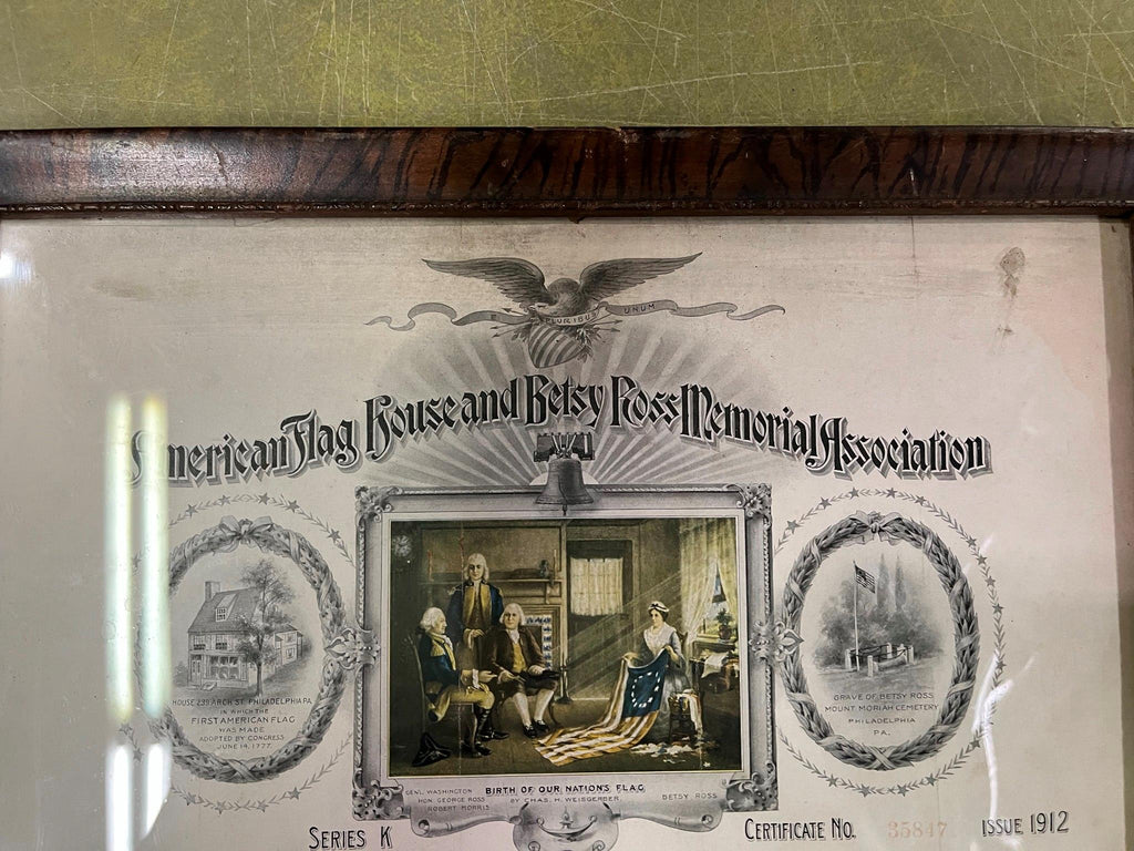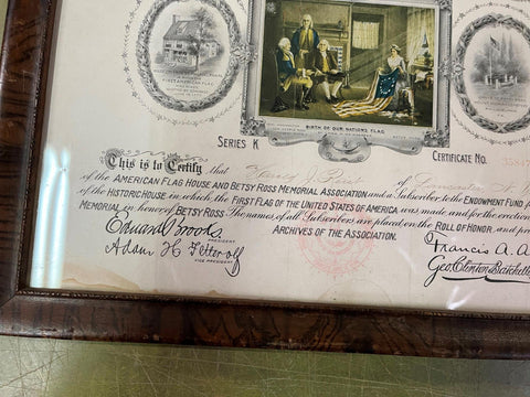 American Flag House and Betsy Ross Memorial Association Certificate 1912 FRAMED