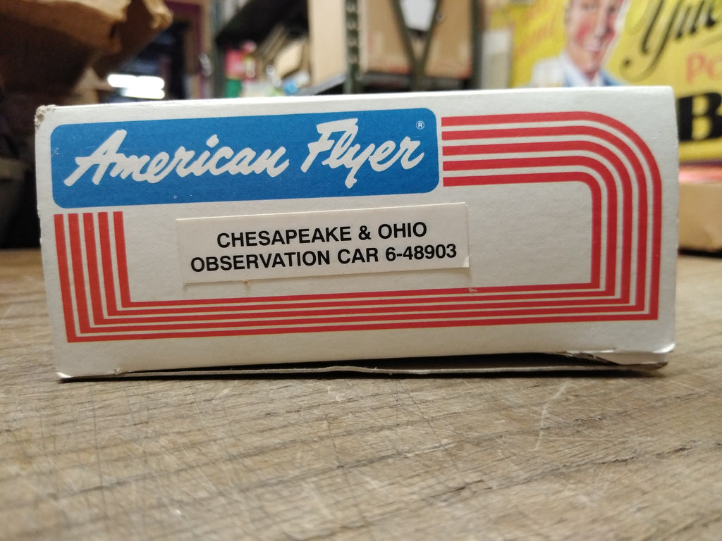 ***PLEASE LOOK AT ALL THE PICTURES AND ASK QUESTIONS BEFORE BIDDING*** This is a American Flyer Lionel Train S Gauge C & O Chesapeake & Ohio Illuminated Observation Car 6-48903, in Near Mint Condition! The pictures are a substantial part of the description so please examine all the photos and contact me if you have any questions. We will be happy to save you shipping costs by picking this up at our shop. Thank You 091924- RK-03