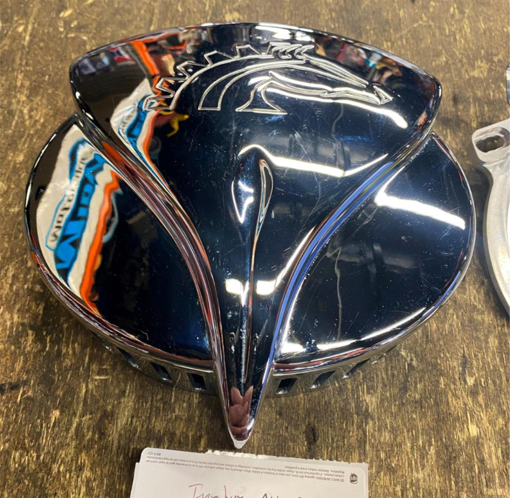 American Ironhorse Chopper Texas LSC Slammer Tejas OEM Air Cleaner Cover Chrome has a few smalls from sitting, not sure of all years & models have some backing plates well list also.