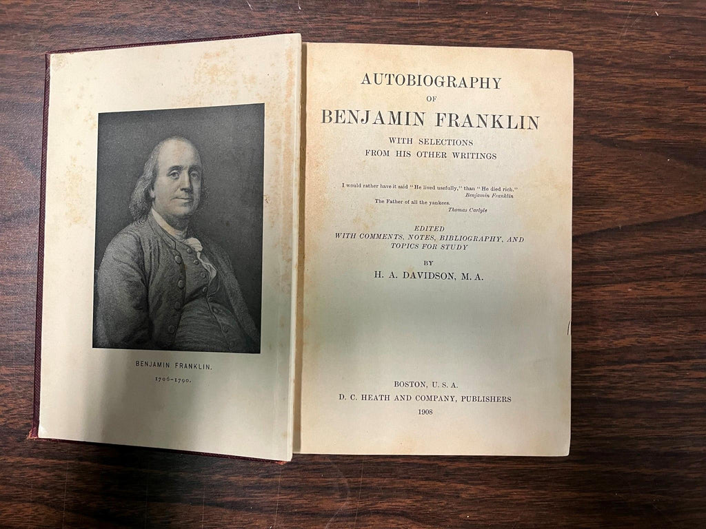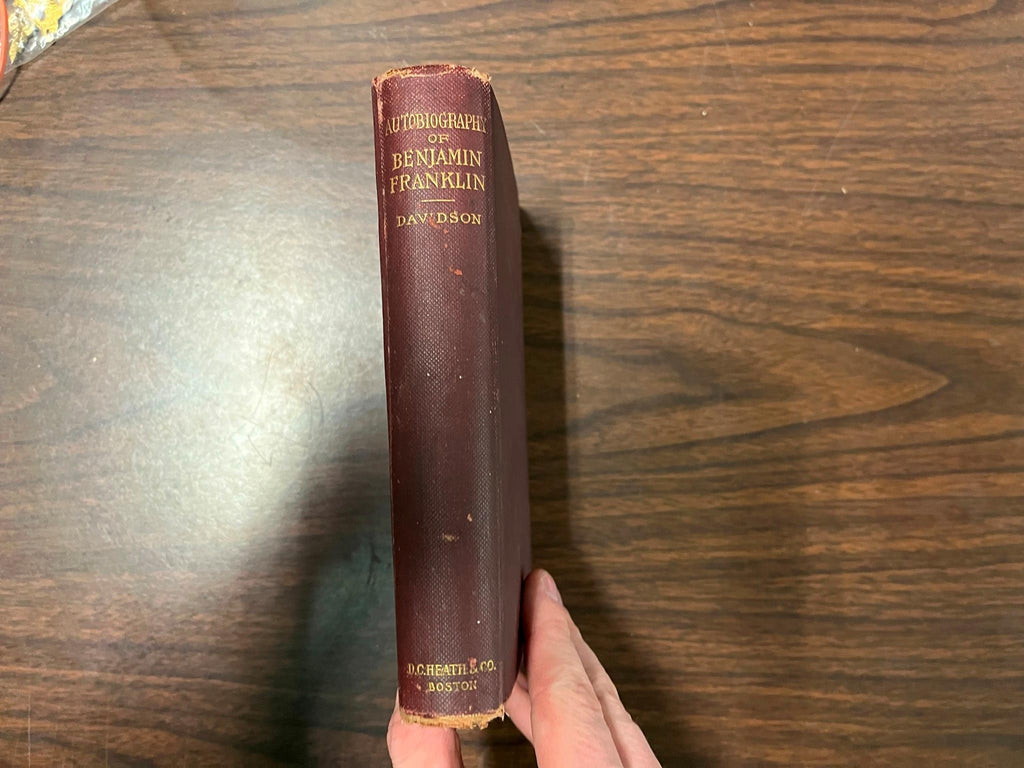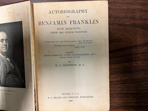 Antique 1908 Autobiography of Benjamin Franklin Hardcover Book H.A. Davidson