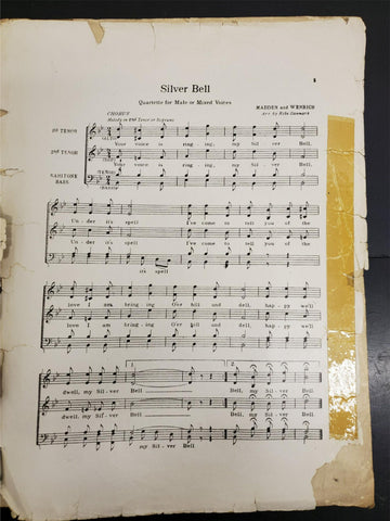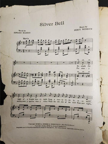 Antique 1910 Titanic Era Sheet Music Silver Bell Collectible Rich In History USA