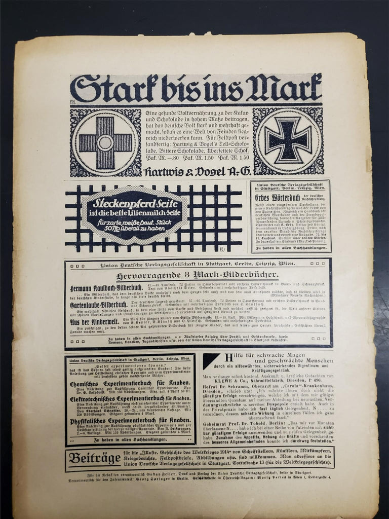 Antique 1914 WW1 Illustrated Story German Newspaper Publication Art Complete #8