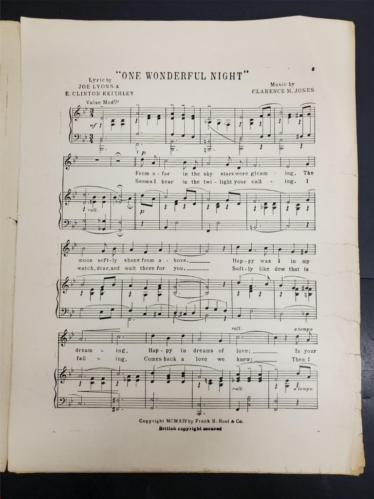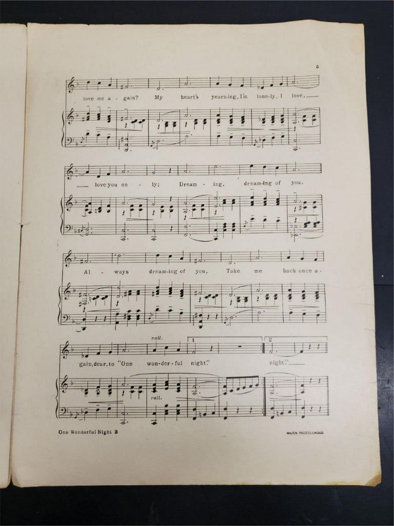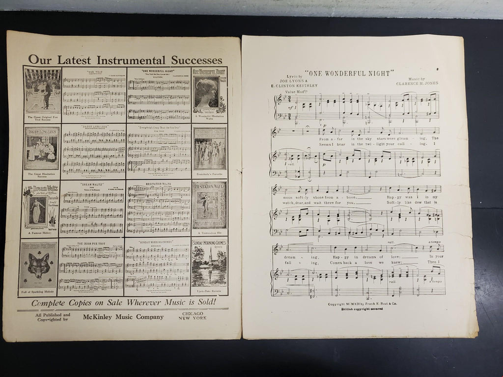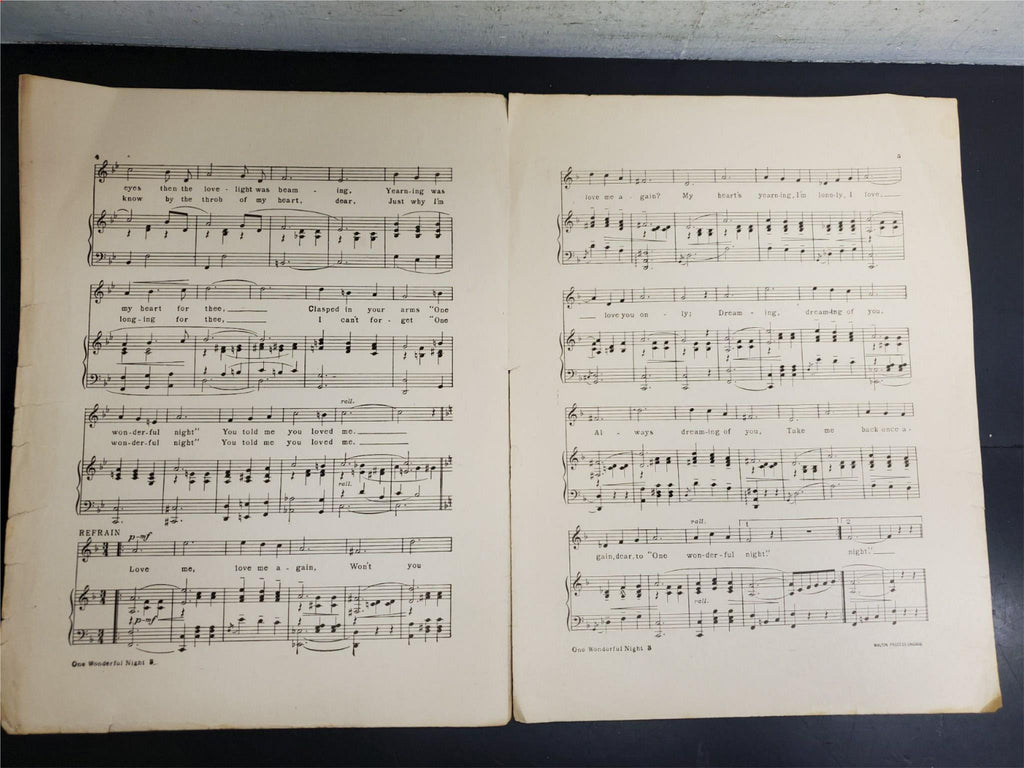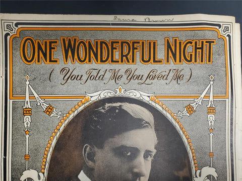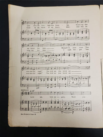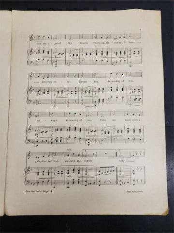 Antique WW1 1914 Sheet Music One Wonderful Night Ballad Collectible Music Rare